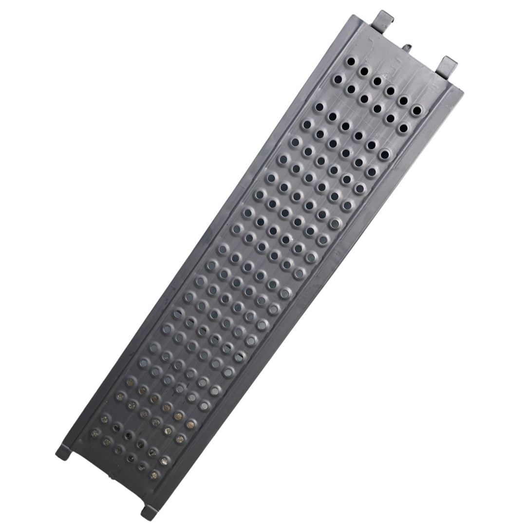 Com superfície puncionada antiderrapante, ele garante a aderência necessária para o trânsito de operários e ferramentas, mesmo em condições de umidade. O acabamento em Galvanização a Fogo protege o equipamento contra a corrosão severa, sendo resistente a batidas, abrasão e ao contato direto com argamassa e solventes.